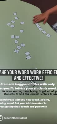 Here we are trying out my new Word Ladder scripts for WW 10! Word work used to be such a hassle when my kids had baggies with the entire alphabet. We would spend 5+ minutes just searching through all of the tiles to be ready with the ones we needed for the day. And sometimes we still didn’t have enough of a certain letter! Now, each list that we work on has pre-made baggies with the exact letters needed to make each word. No extras! This saves so much time 🙌🏼🙌🏼🙌🏼 I also created my own word ladder scripts for each list so that I am no longer trying to come up with the word changes on the fly or spending precious time at home preparing word work. And then on top of all that when I shifted my focus into differentiated learning for all, I knew that I had to create an efficient and effective system so that ALL of my student needs were being met – not just those on level! Check out my blog, www.teach2thestudent.com to read about how I set up spelling practice and word work in my classroom so that every student works at their OWN level of instruction, i+1 and no one is bored or frustrated👌🏼you can find these resources on my TPT page as well!